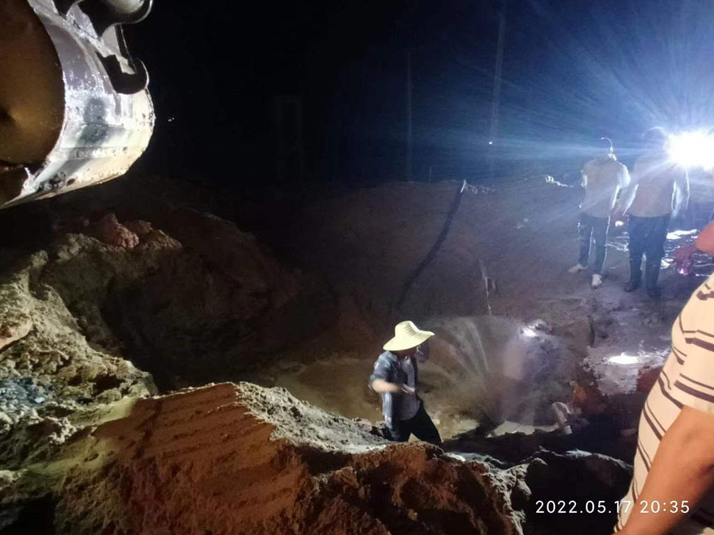 5月17日晚,某施工單位在道路施工過程中挖破信義玻璃片區(qū)污水管,導(dǎo)致大量污水外流至路面,嚴(yán)重影響了周邊環(huán)境及市民出行。